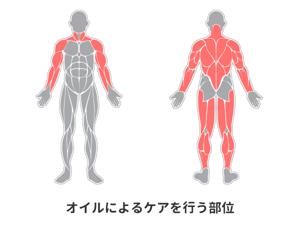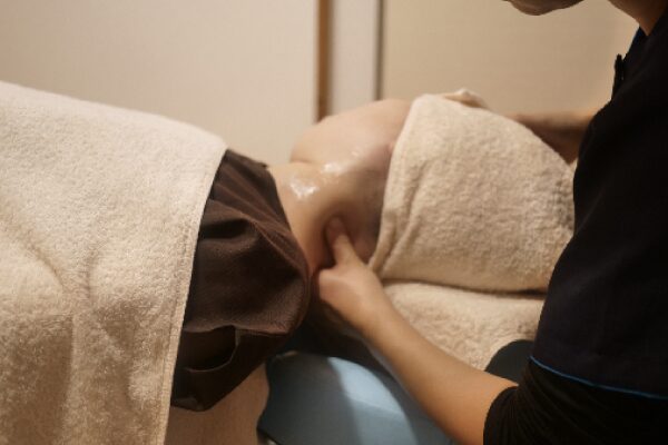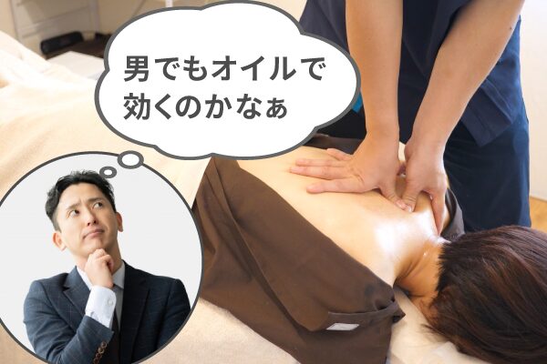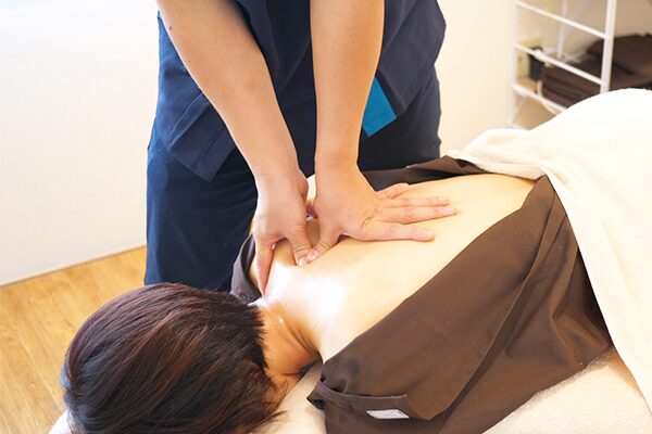当院では背中~肩もオイルによる施術を行います、男性施術者に抵抗がある方は必ず女性施術者をご指名ください。
